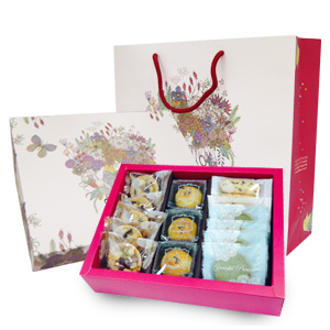 這款中秋禮盒也超級特別,禮盒包裝很精細,也是很多長輩喜歡的喜氣象徵,如果有要去拜訪親戚長輩或是另一伴的長輩,都是很推的中秋禮盒之一喔,此款禮盒內含了不可或缺的蛋黃酥還有不膩的手工餅乾,綜合果仁塔、蔓越莓餅乾、抹茶芝麻餅,讓你有多重的口感選擇喔!